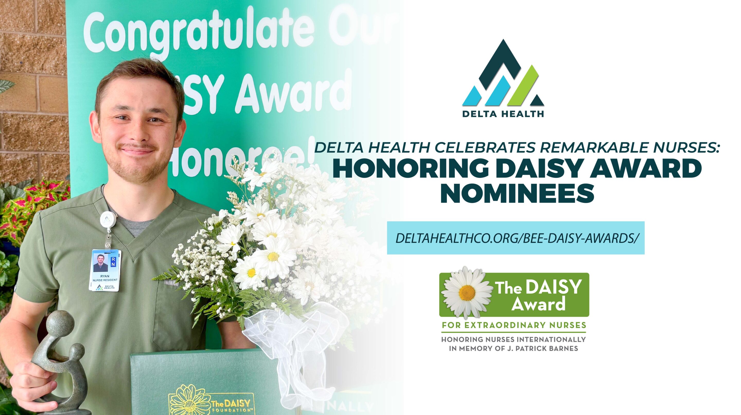 “Med/Surg is proud to have Ryan win this 1st quarter Daisy Award for 2025,” Dawn Arnett, BSN, RN, Director of In-Patient Services, Med/Surg at Delta Health and DAISY Award Coordinator. “He has excelled at Delta Health, first being a C.N.A. and then completing his RN degree. He is in the nurse residency program for RN’s in their first year of nursing at Delta Health. He possesses amazing attention to detail, along with modeling exceptional bedside manner, showing compassion and empathy for his patients and team members. Congratulations, Ryan!”