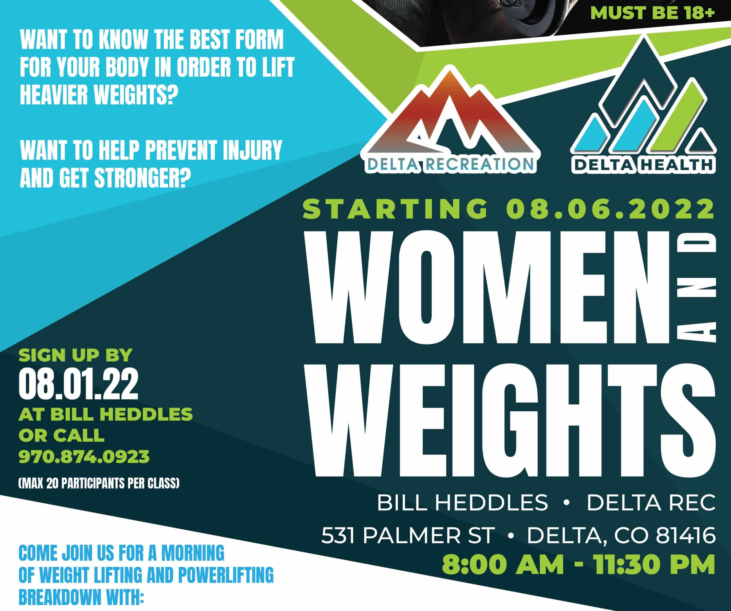 Delta Health and the Delta Recreation Center are excited to present Women in Weights! A morning class that breaks down weight lifting and powerlifting for women.